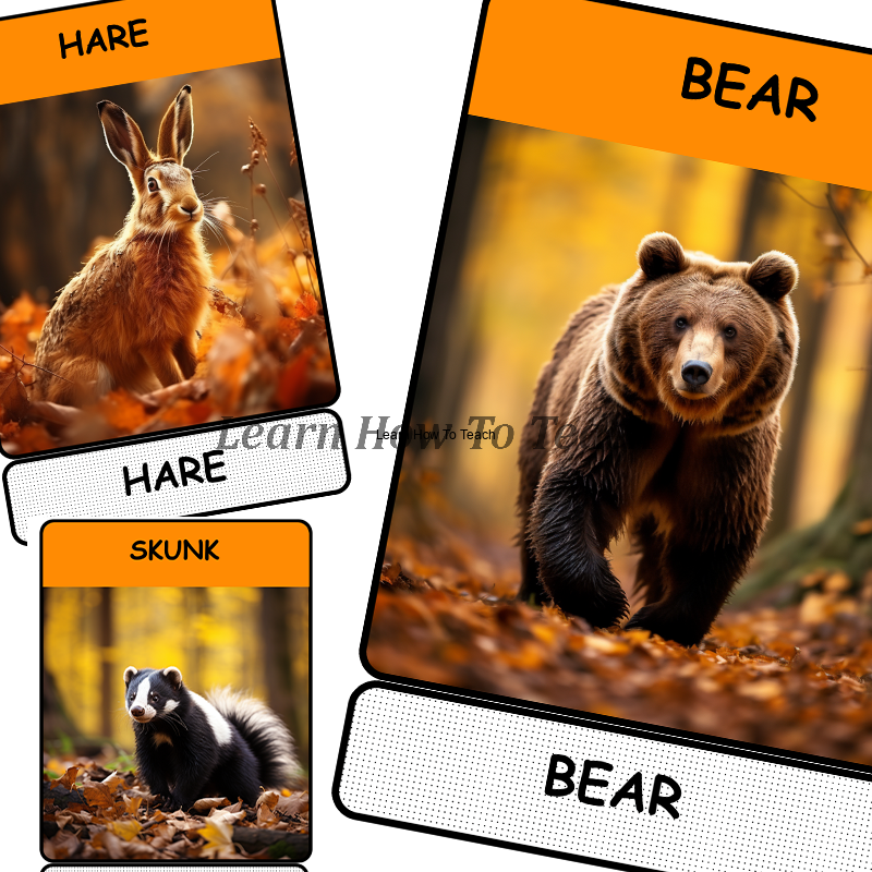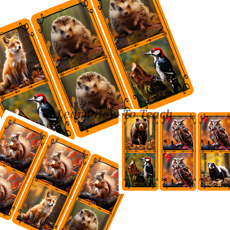 - 12 Flashcards Forest animals w rozmiarze A4 wraz z podpisami