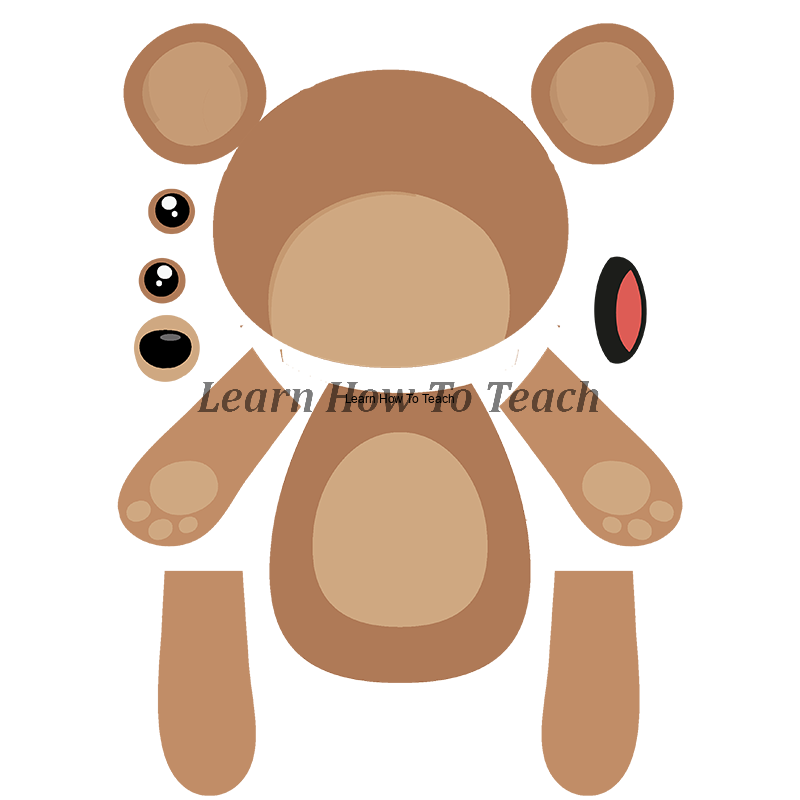 - Gra "Zbuduj Misia" w wersji XXL oraz A4 dla każdego dziecka- składanie części ciała misia - head, ears, nose, eyes, mouth, tummy, arms, legs (paws).